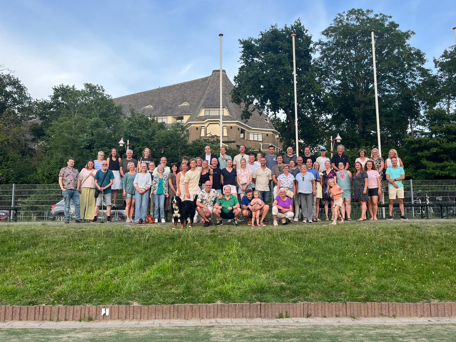 Zo’n 60 KVS-vrijwilligers, variërend van 12 tot 82 jaar, kwamen gisteren naar het Westbroekpark om getrakteerd te worden. Door het mooie weer konden we buiten op het terras lekker lang genieten van een heerlijk buffet, koele drankjes en gesprekken met elkaar. Alleen voor de quiz verhuisden we tijdelijk naar binnen. Sander had 32 leuk vragen voorbereid. De winnaar van de quiz werd Team ‘O’, wel met enige hulp van Shazam en Google. 😉 Gefeliciteerd!