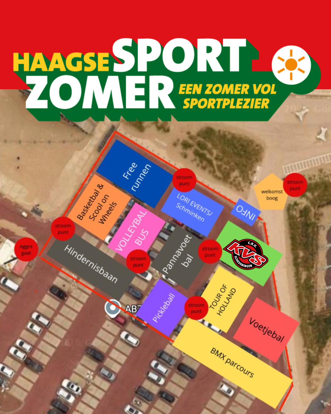 Onder begeleiding kunnen ze allerlei sporten uitproberen, zoals panna-voetbal, BMX’en, volleybal, hindernisbaan, pickleball, freerunnen, rolstoelbasketbal, korfbal en meer. We hebben inmiddels een echt KVS-promotieteam! Dit team gaat met de kids schieten en partijtjes doen. En wellicht maken we nieuwe kinderen enthousiast voor onze lievelingssport.